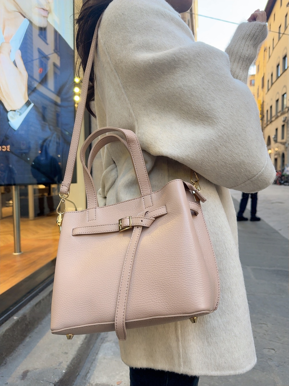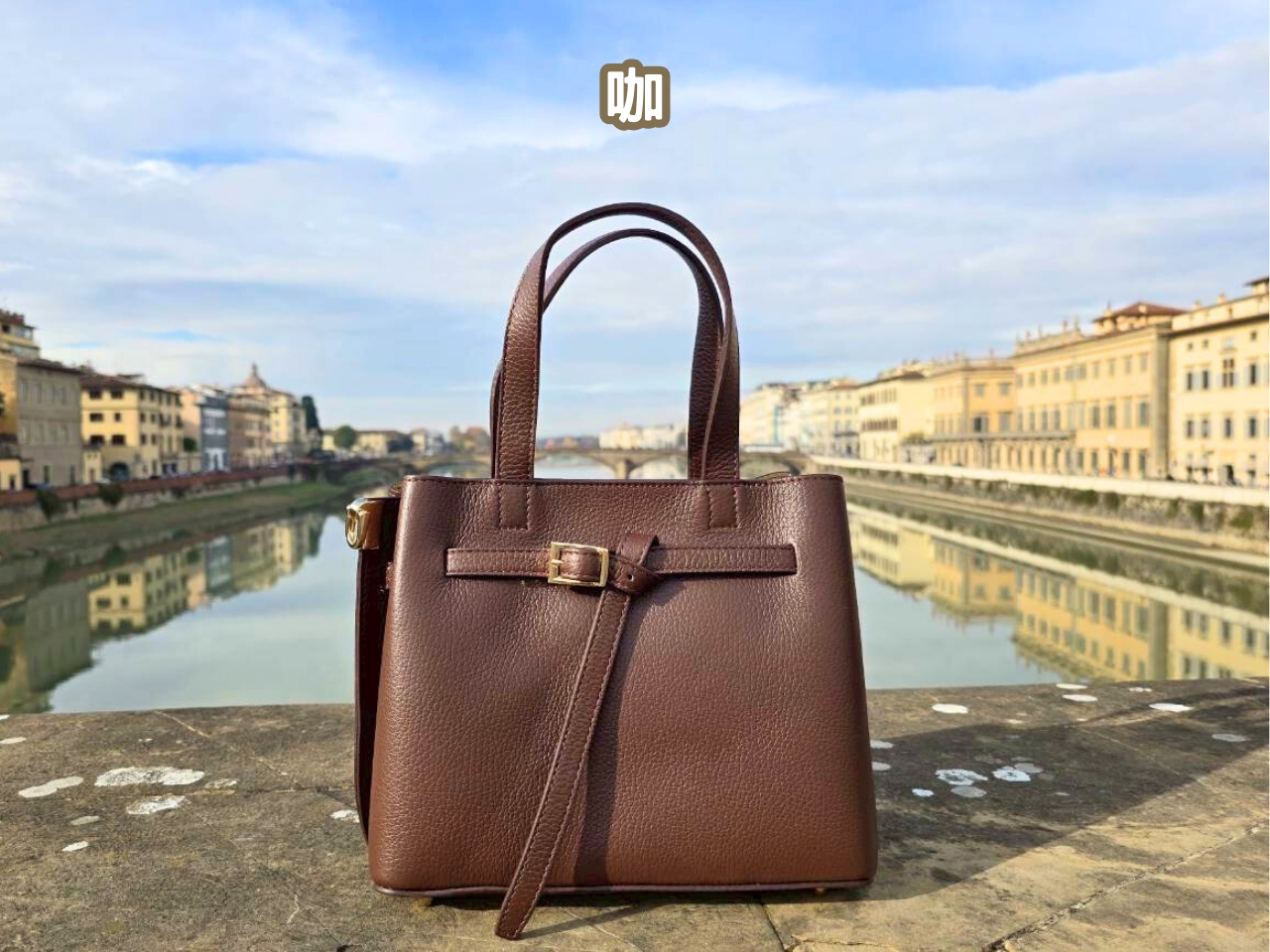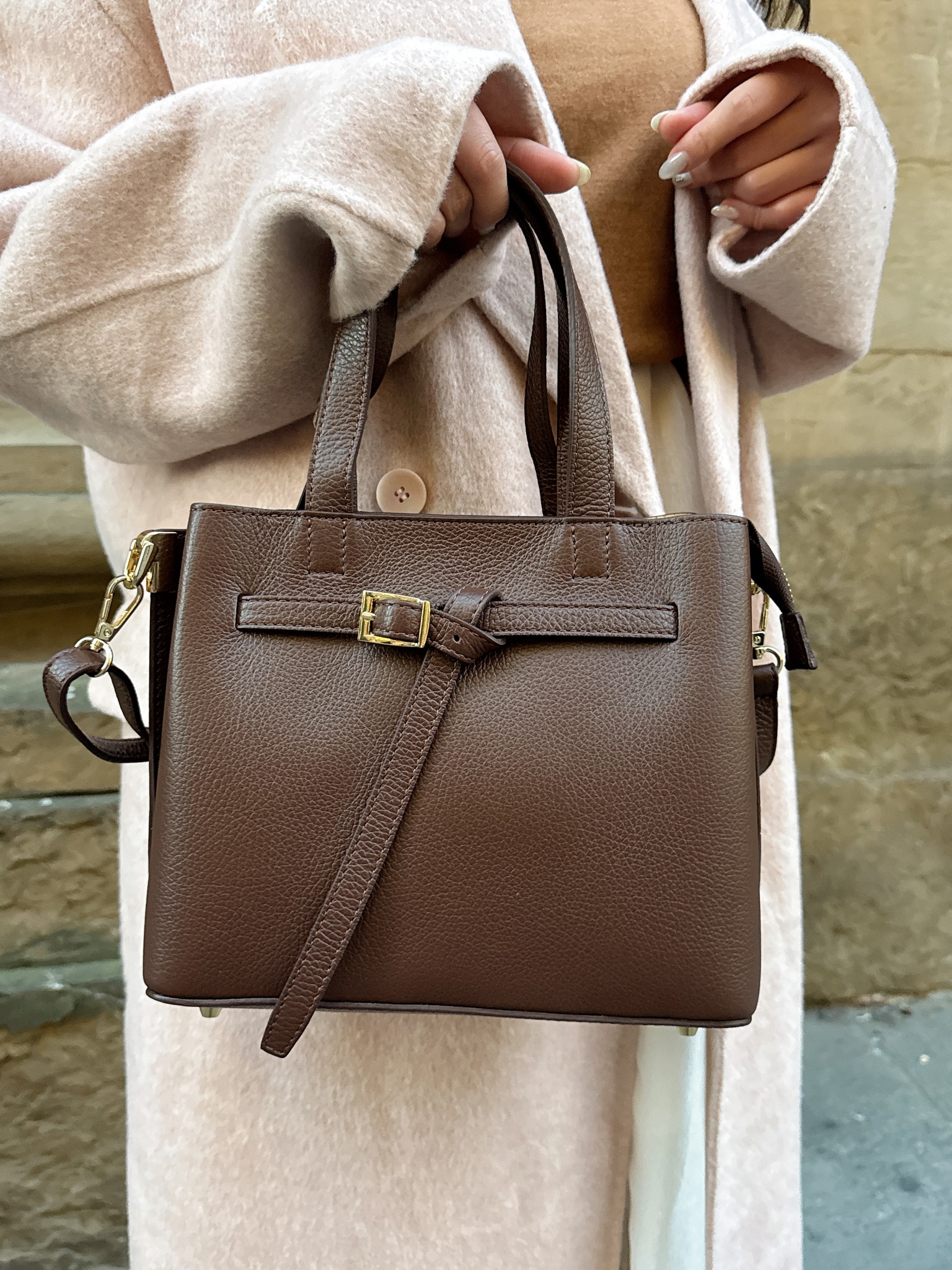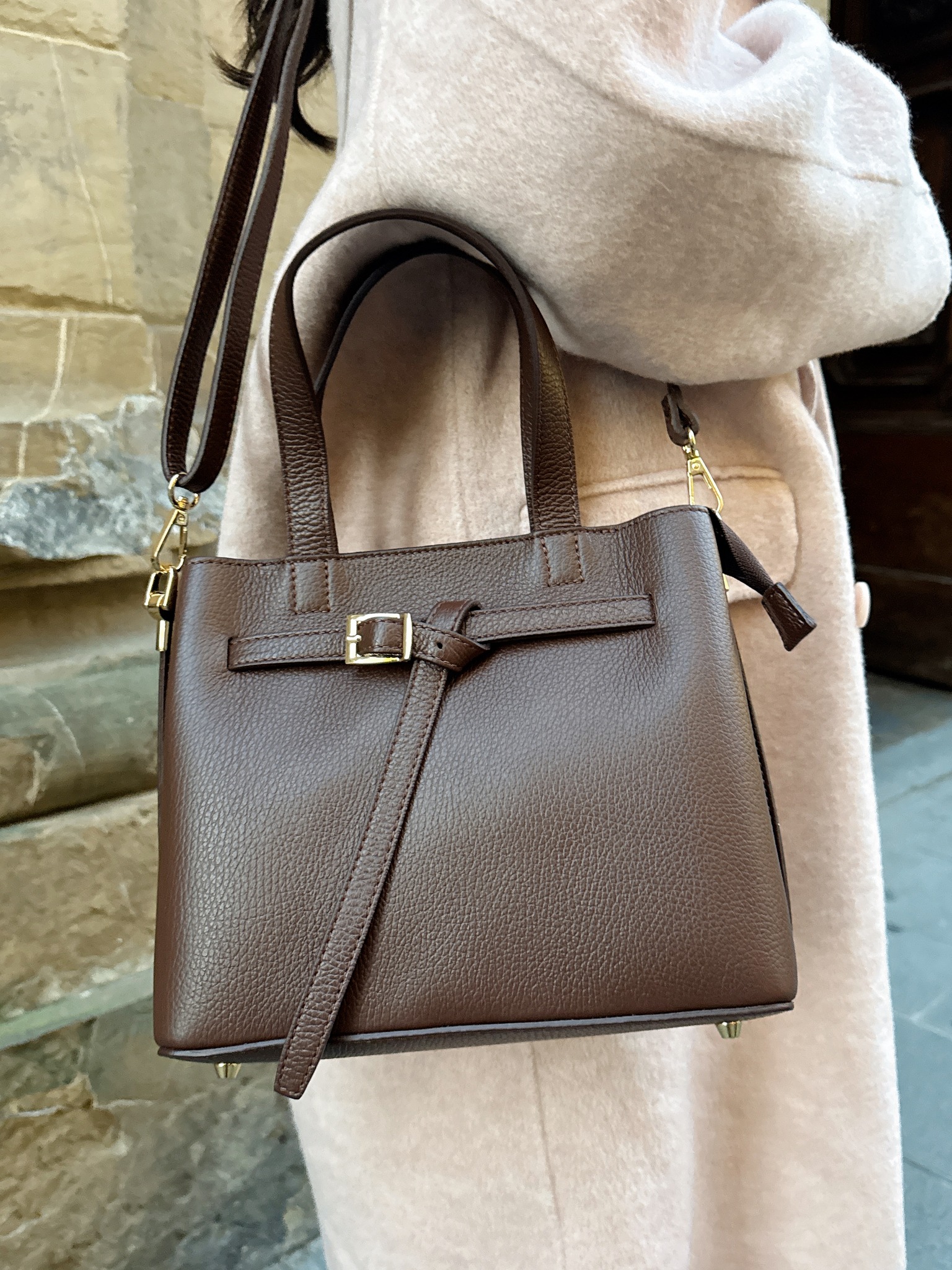 C07義大利真皮-皮帶扣肩背手提兩用包