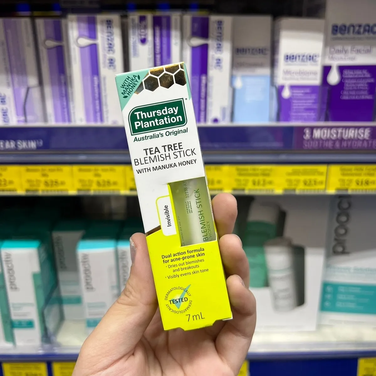 只要聽到澳洲Thursday Plantation星期四農莊, 就知道是澳洲人人手一支的痘痘救星! 星期四農莊麥盧卡蜂蜜茶樹祛痘急救棒雙成分修護:茶樹精油+麥盧卡蜂蜜筆狀設計:精準點塗不沾手無添加.敏感肌也安心 來自澳洲原裝進口,藥妝店長銷冠軍! Chemist Warehouse、Woolworths 都是暢銷榜常客