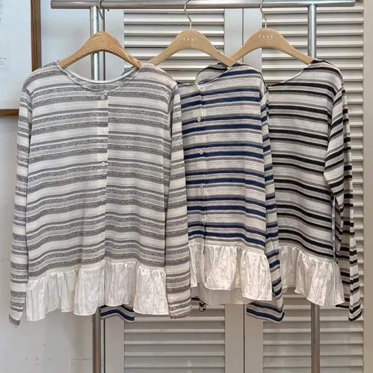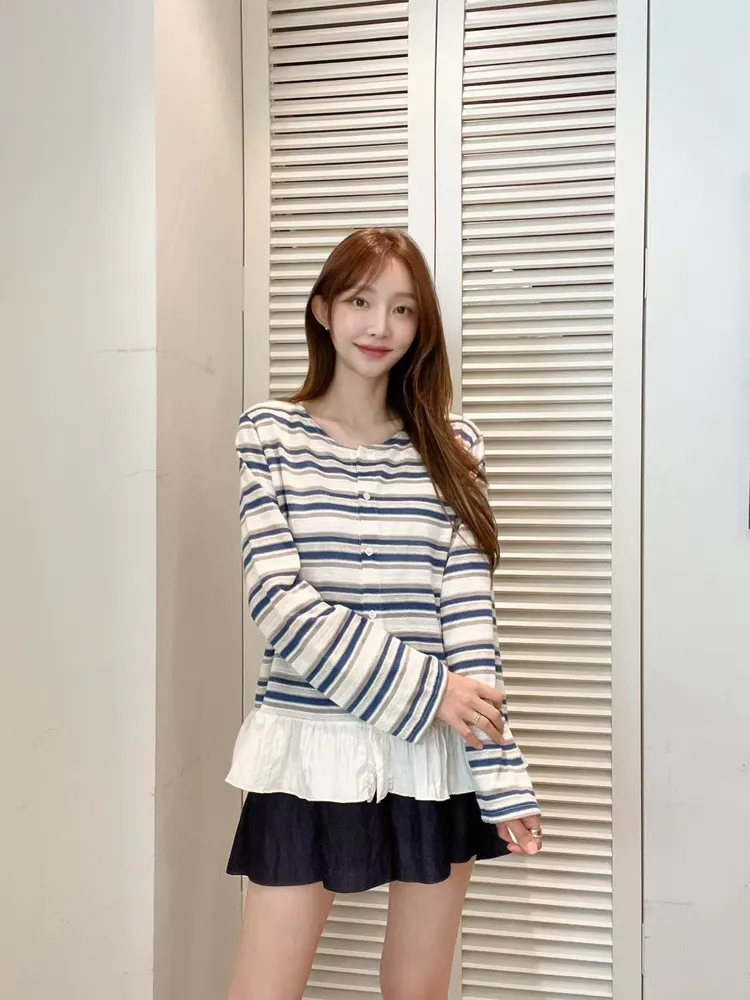 撞色條紋的設計,加上顏色都是淡淡的色調,穿起來溫柔感滿滿,