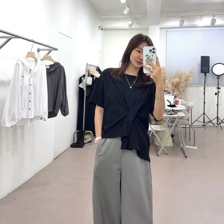 這件一穿上去,腰線馬上小一吋! 而且是涼感的棉100%材質,整天穿著都超舒適,不悶熱、不咬身~ 最貼心的是,它剛剛好能遮住小腹, 但又完全不會壓胸,看起來輕鬆自然。 背後的衣襬還特別做了往下斜的設計, 屁股直接被修掉一半,從正面到背面都幫你修飾得超好! 日常搭牛仔褲、裙子或是通勤褲都很適合,完全是必收的顯瘦百搭上衣 尺寸cm: 長50-62、肩54、胸56、袖長18