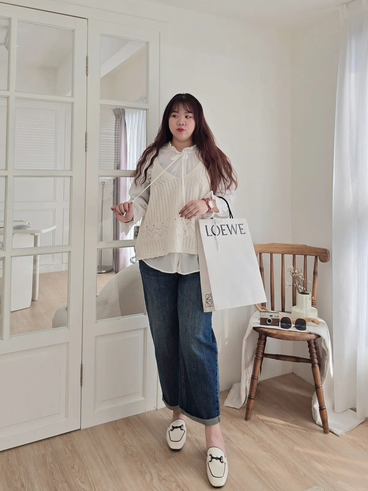這件男友褲版型介於直筒和闊腿寬褲之間,