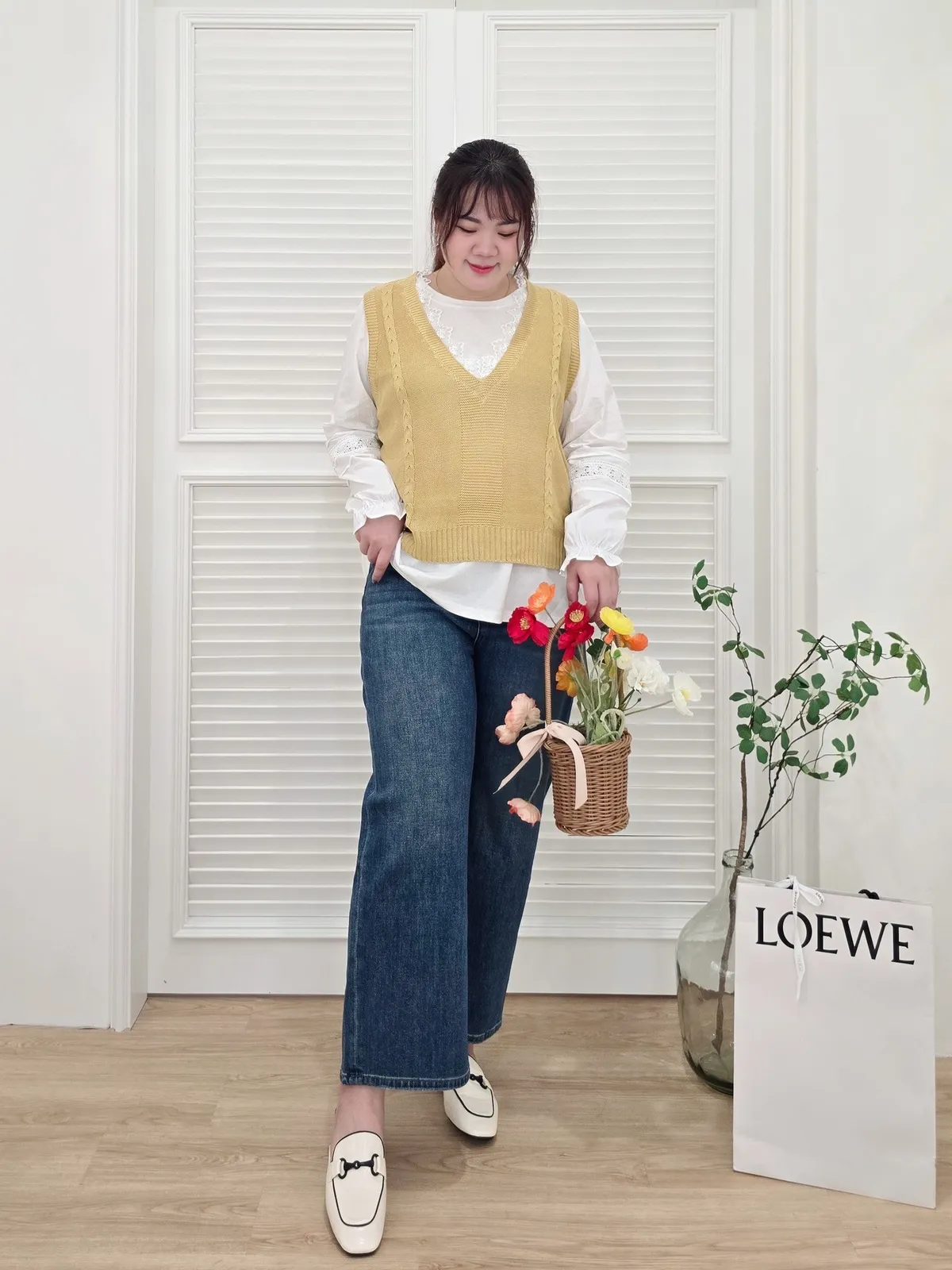 配個針織小罩衫,輕鬆演繹出隨性又高級的感覺~