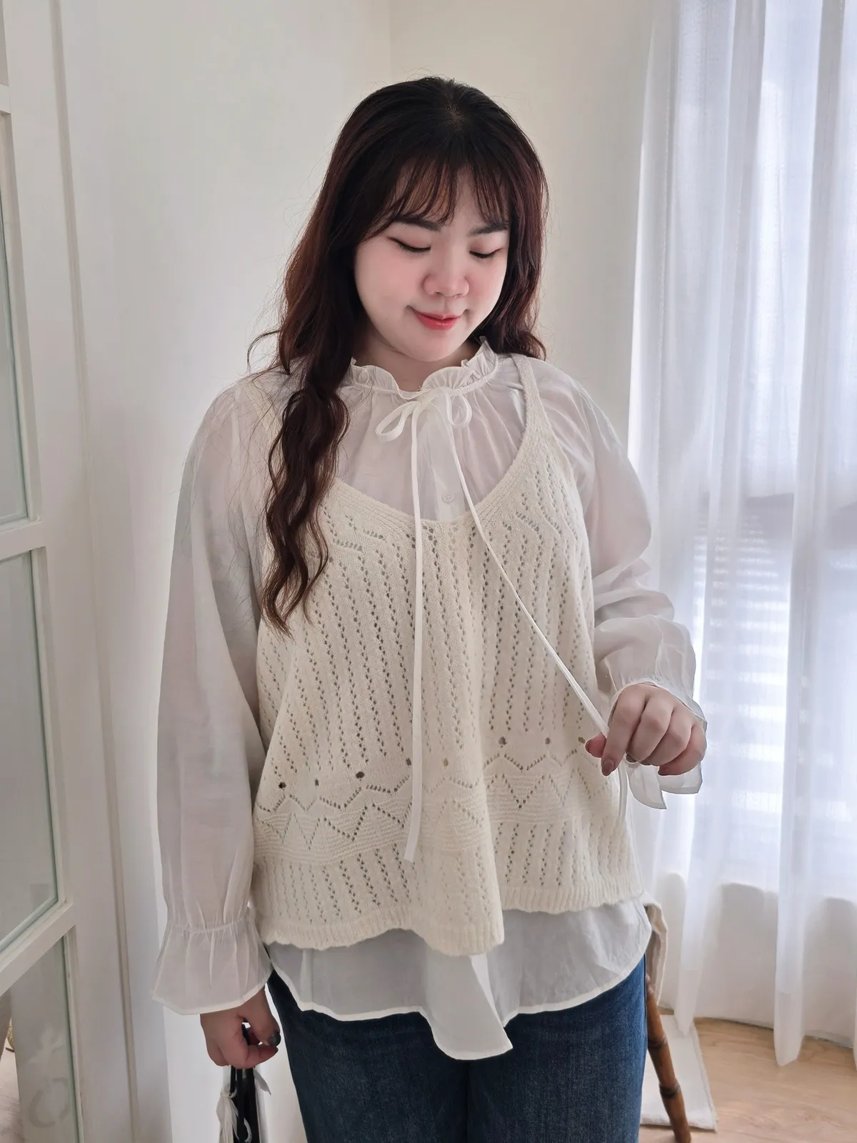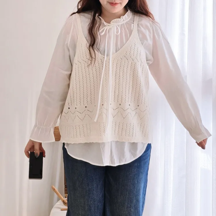 這款針織背心襯衫真的超級可愛, 一件就能穿出滿滿的層次感! 真兩件式的設計,柔軟針織背心搭上荷葉邊的襯衫, 荷葉邊和蝴蝶綁結的細節讓整體多了分甜美感。 除了領口,袖口也做了精緻收邊, 穿起來不僅修飾肩線,還提升整體的精緻度。 無論是搭牛仔褲、裙子,或是單穿都超好看的吶! 上班、約會、出遊都能輕鬆駕馭, 甜美中又帶點氣質感,是一件會讓人一眼愛上的上衣。 ⠀⠀