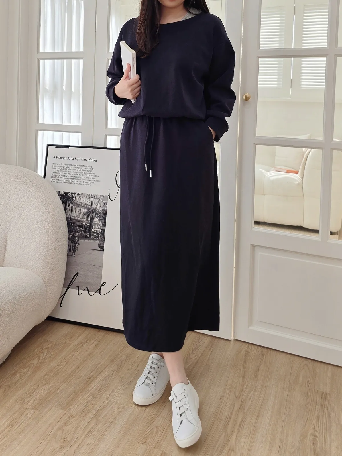 偶爾假日想出去看個電影、逛個街、溜個娃, 這件絕對會是我的首選,最重要的一個點是材質非常舒服, 整套純棉超親膚,上衣是假兩件下縮口的設計, 看起來鬆弛感滿分,裙子的彈性超好XL完全沒問題, 一套直接搭好,配小白鞋就很好看,完全不用思考就能出門。 秋天的質感,從穿衣開始,一套好看的衣服,整年鬆弛有度。 ⠀⠀⠀⠀⠀