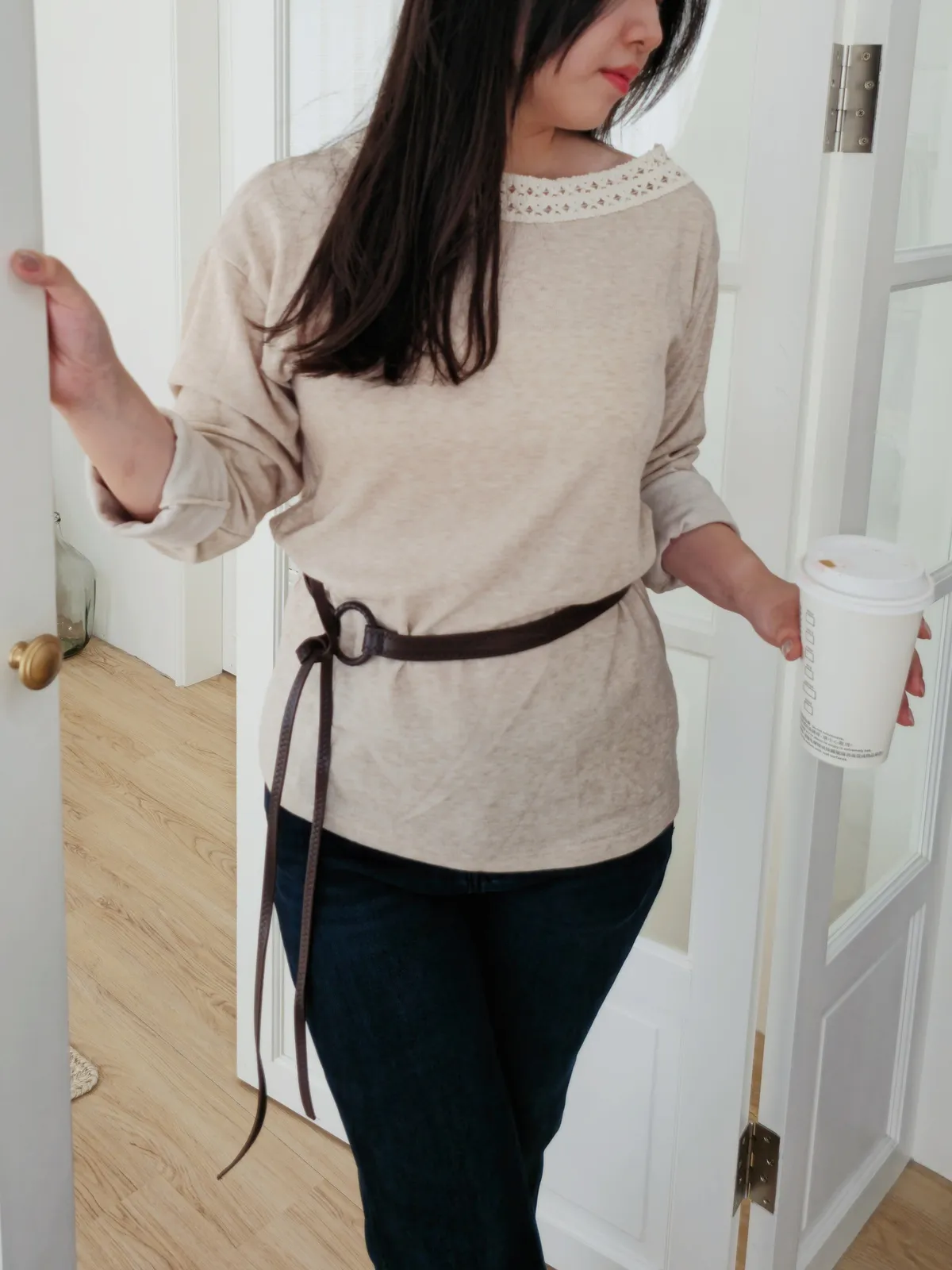 這件緹花刺繡大U領上衣真的美到讓人尖叫! 大U領超顯鎖骨,配上細緻刺繡質感直接拉滿, 還有附腰帶設計,輕鬆收出完美比例,溫柔中帶點小俏皮, 奶色是超溫柔的燕麥奶配上咖色的腰帶,很秋天氛圍, 黑色是碳墨灰超特別的顏色配黑色腰帶,比較個性一點, 不論是配裙子還是這次直播的5款牛仔褲, 都能輕鬆穿出時髦感,酷甜女孩必收一件! ⠀⠀⠀⠀