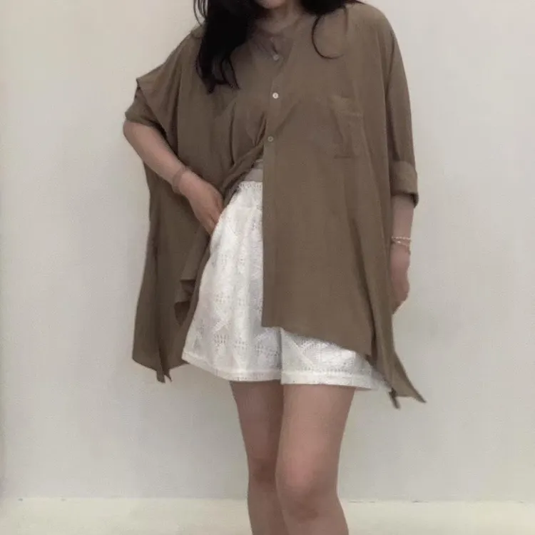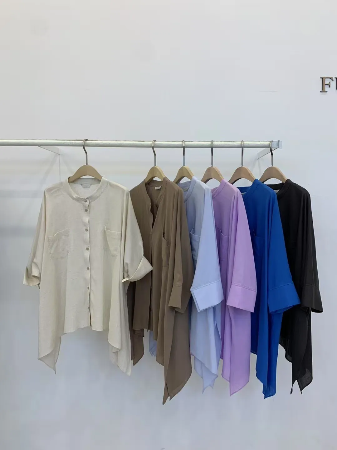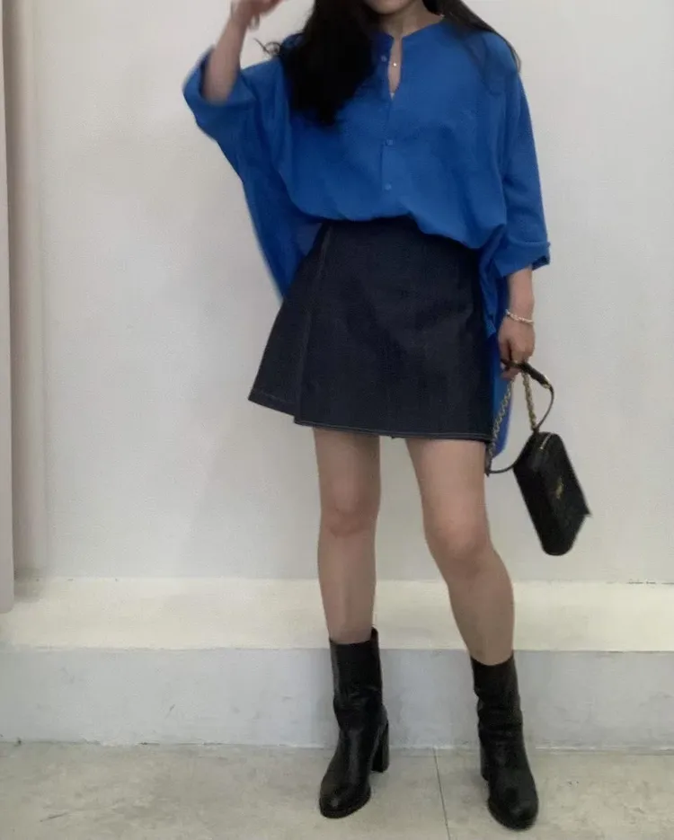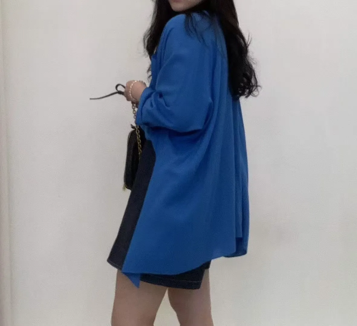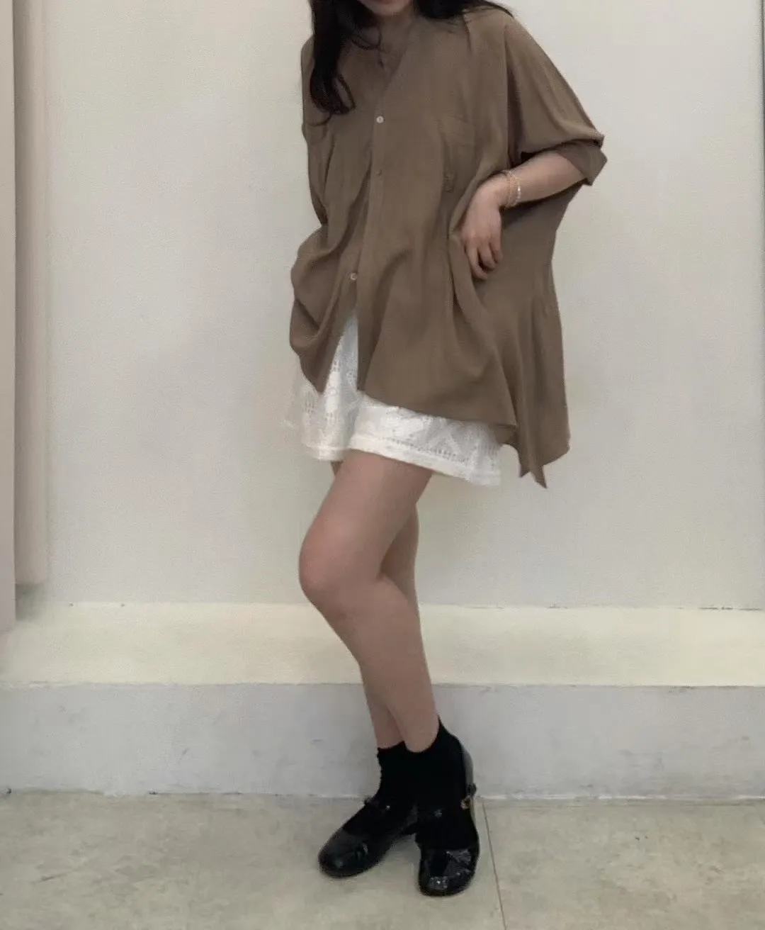 這件上衣真的美到不行! 下擺特別做了倒 V 剪裁,可以很自然地修飾跨寬,整個比例看起來更順。 手袖還能反折,隨時變換造型,不怕看起來沒精神。 扣子是同色系設計,整件上衣的色調更一致,質感大加分。 加上側開岔、前短後長的版型, 不管是把衣服紮進去還是放出來,都超俐落又顯高。 完全是那種上班可以穿、約會也好看的萬用單品!尺寸cm:胸寬:92正常衣長:67全長:80