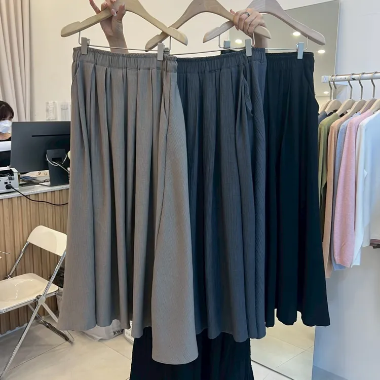壓褶鬆緊長裙(三色售)