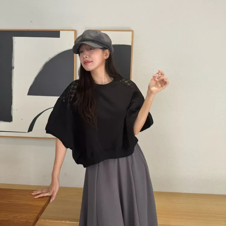 這件上衣是很簡單常見的版型,落肩的版型穿起來很隨性,