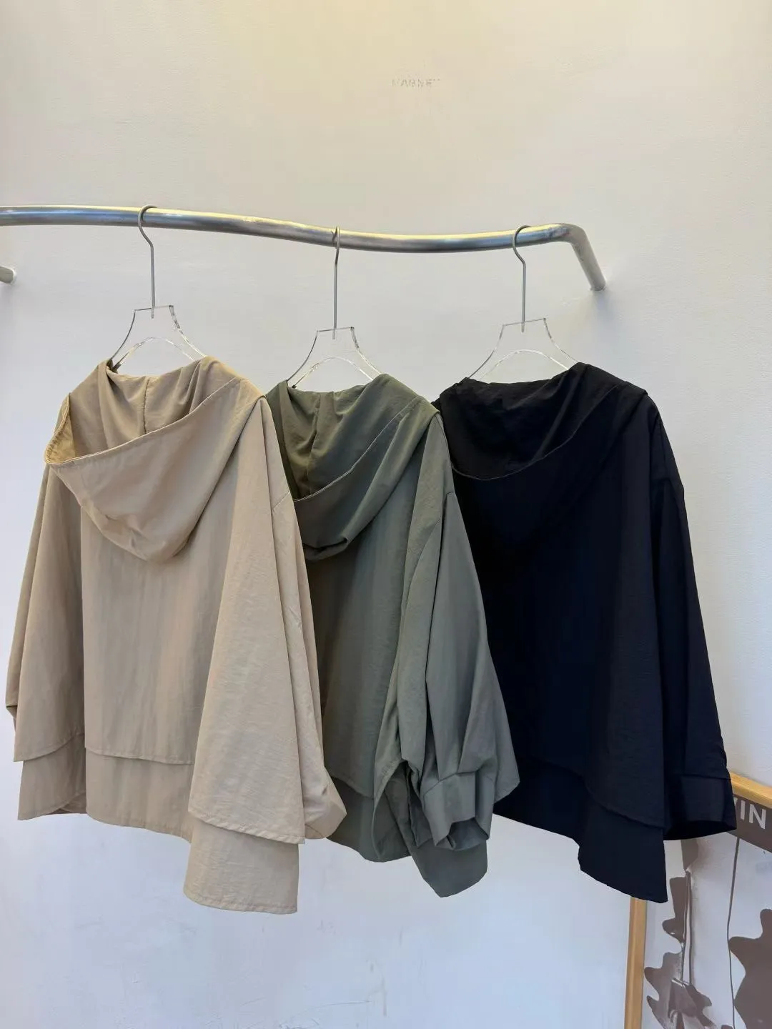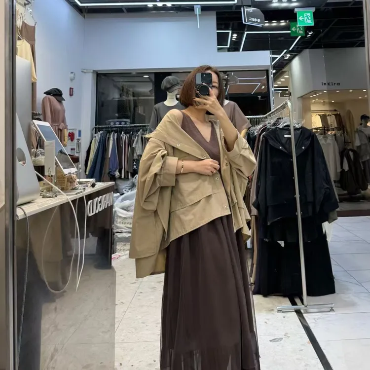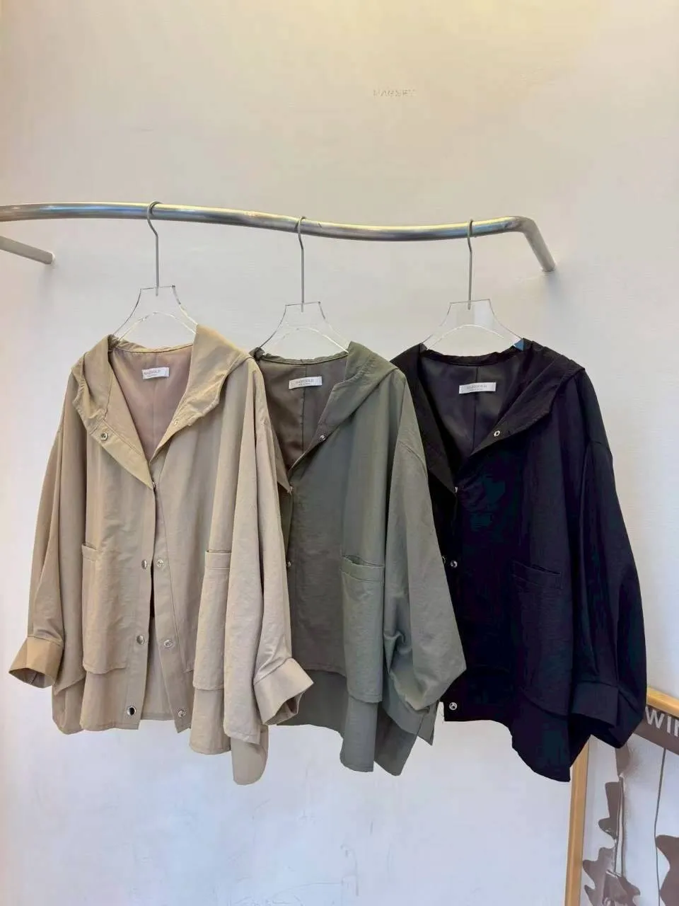 斗篷狀的設計,前短後長, 還有一層疊襬設計,看起來更有層次感。 外套採用扣子開合,左右各有一個方形口袋,實用又耐看。 帽子設計增加了休閒感, 同時衣長剛好可以蓋住屁股和小腹,修飾效果滿分。 重點是版型不挑身材, 幾乎什麼尺寸都能穿得下,完全就是一件好看又實穿的風衣。 ⠀ 尺寸CM 長65、肩62、胸98
