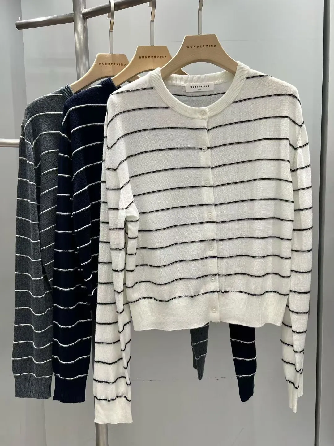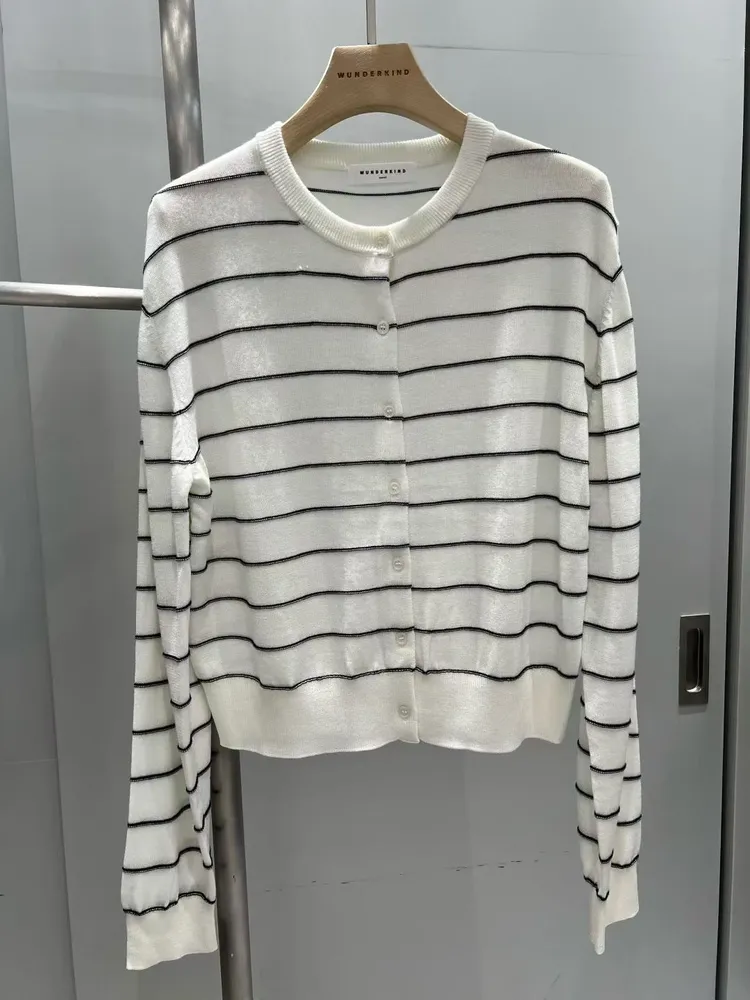 韓國 條紋開襟針織薄外套(三色售)