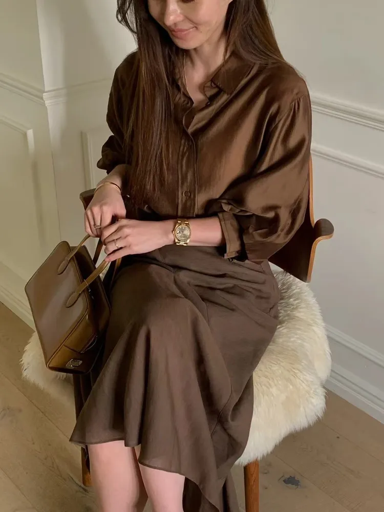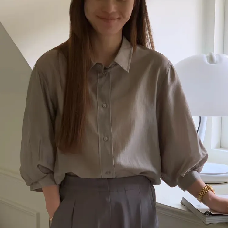 這件天絲光澤澎袖襯衫,就是專屬於初秋的答案!