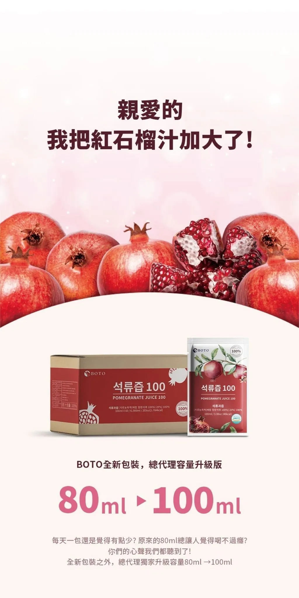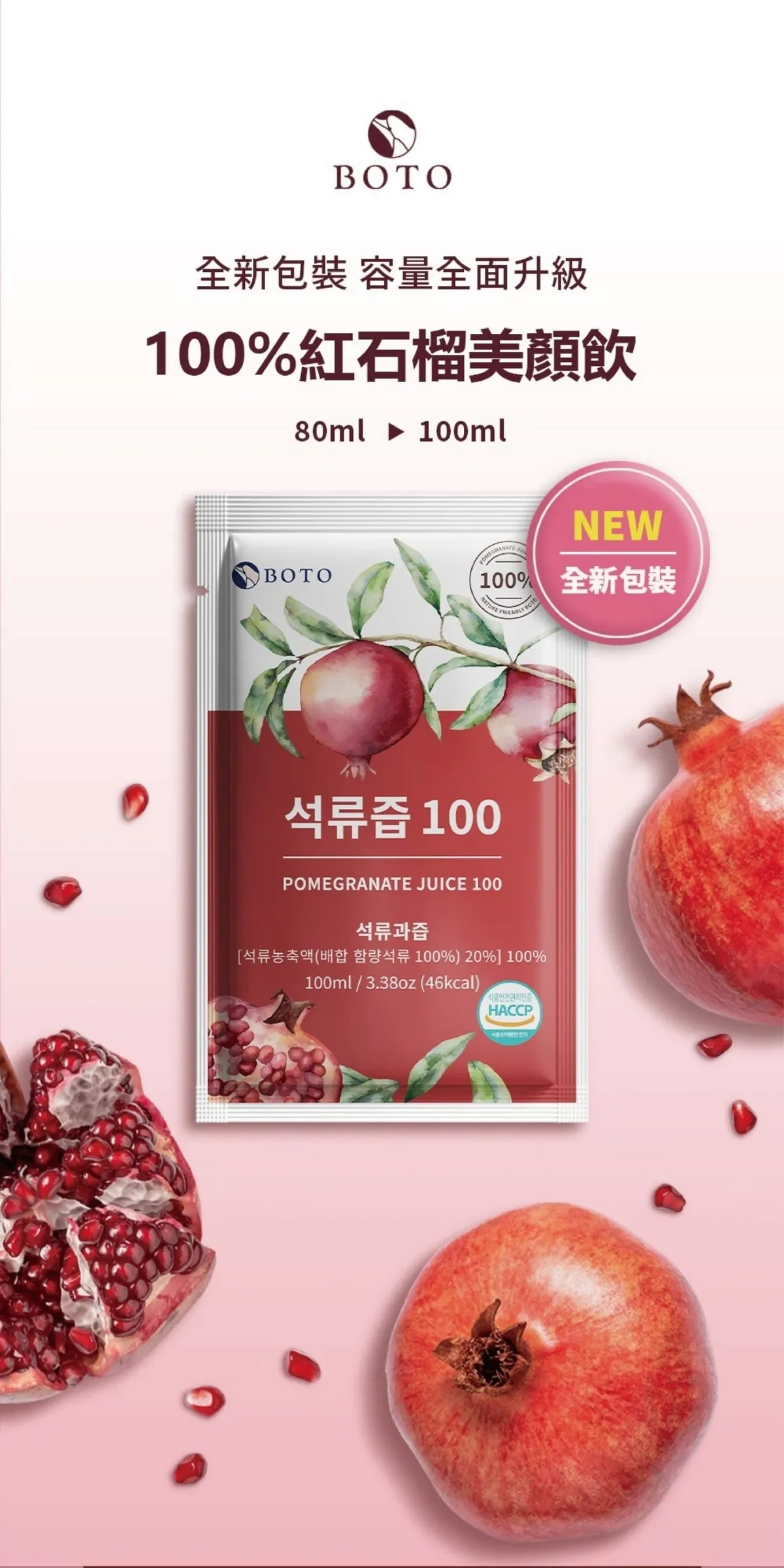 韓國 BOTO 紅石榴汁100ml*60包(新款大包裝)