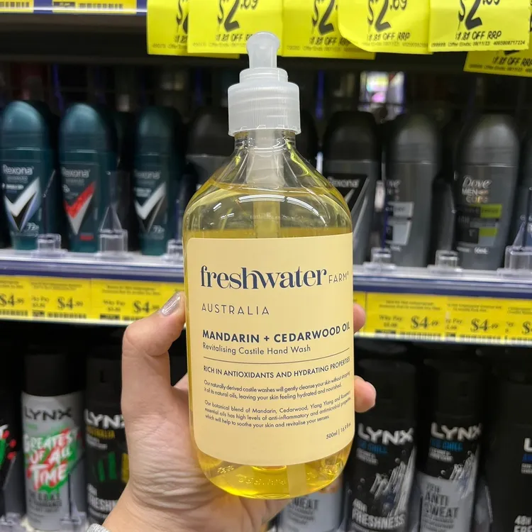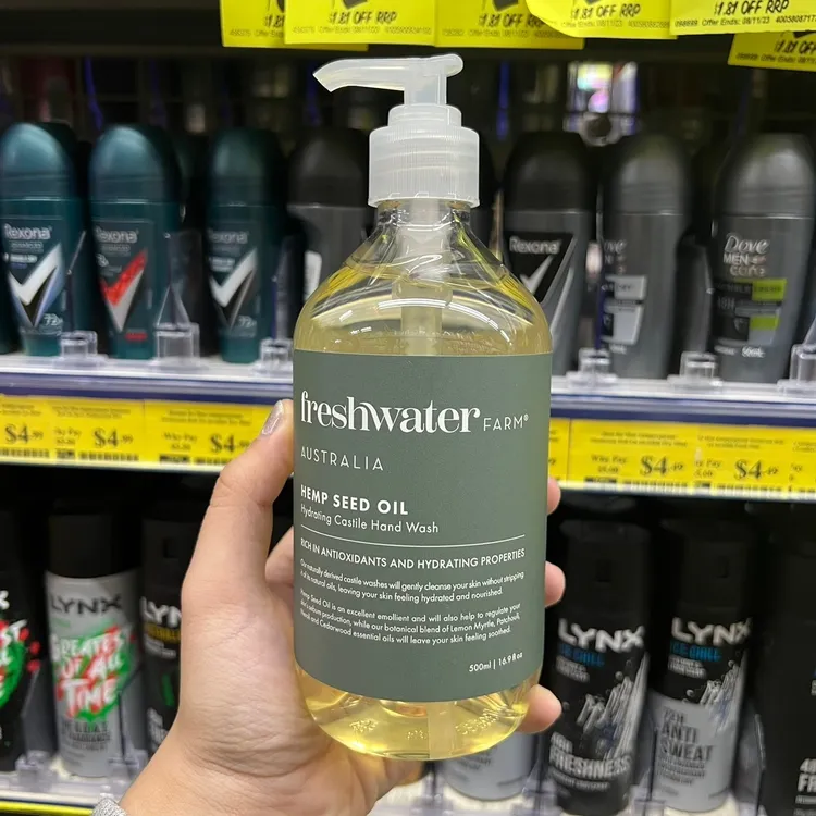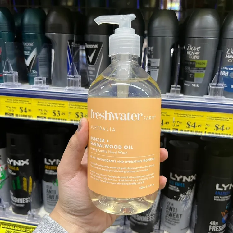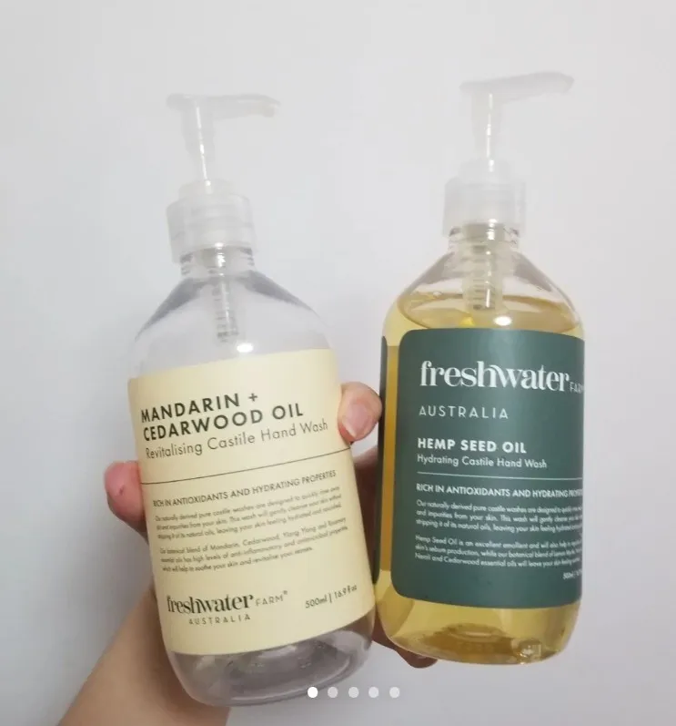 Freshwater Farm 是澳洲最近興起的草本植萃清潔保養品牌, 在澳洲有一個自營的精油農場,使用自家農場植栽自原料開始控管, 所以他們家的商品都主打天然純淨,產品不多但都還滿有名的呢! 像這款洗手液就是主打100%天然製造, 所以敏感肌膚是可以使用的! 澳洲 Freshwater farm天然精油洗手液 500ml #百分百天然配方 每一款天然精油洗手液都以椰子油和橄欖油的天然卡斯蒂利亞為基底。 粉色-玫瑰粉紅 白色-柑橘白雪松 綠色-大麻籽萃取 橘色-昆士亞油與檀香 紫色-薰衣草