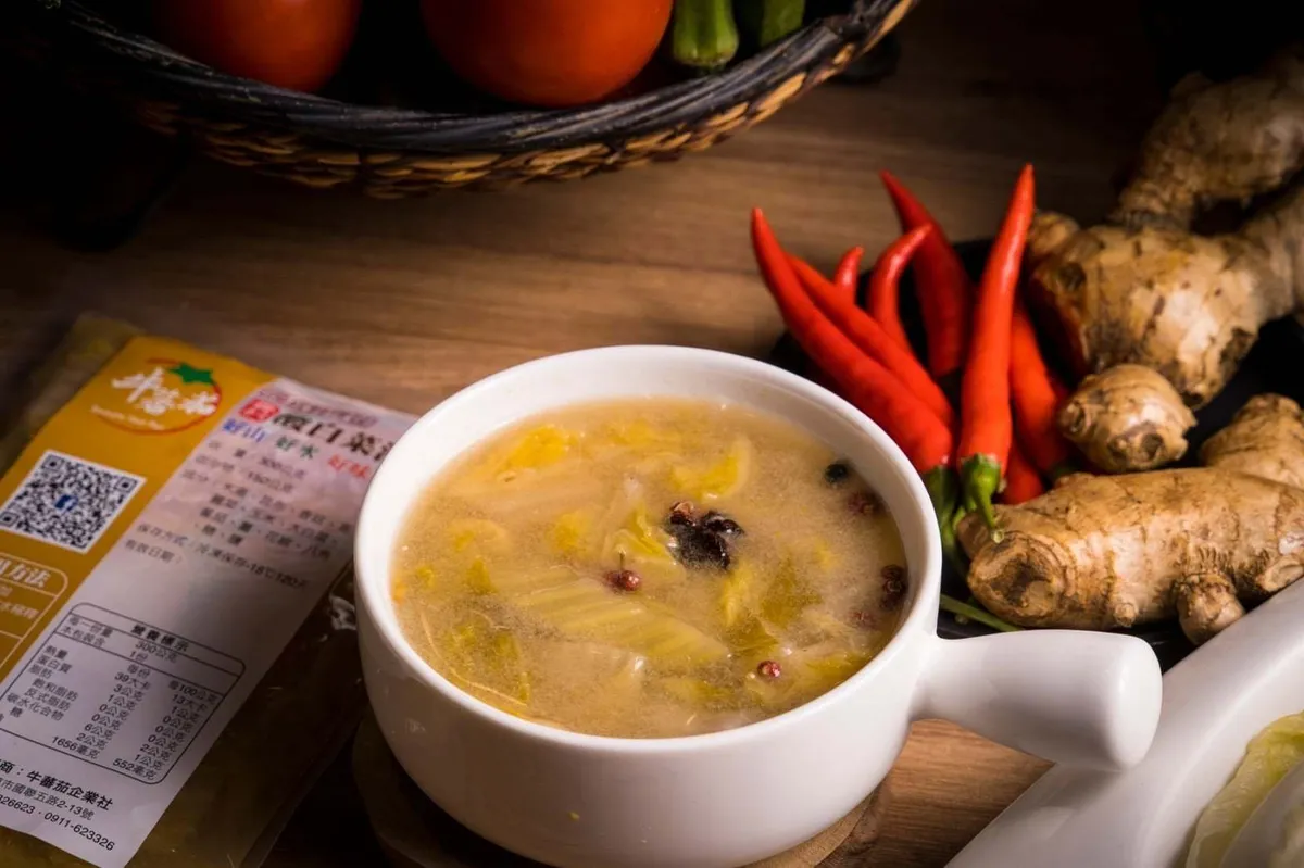 老闆堅持嚴選高山結球白菜,自己遵循著古法天然發酵而成酸白菜,
