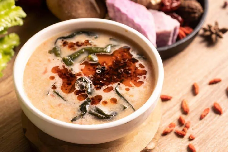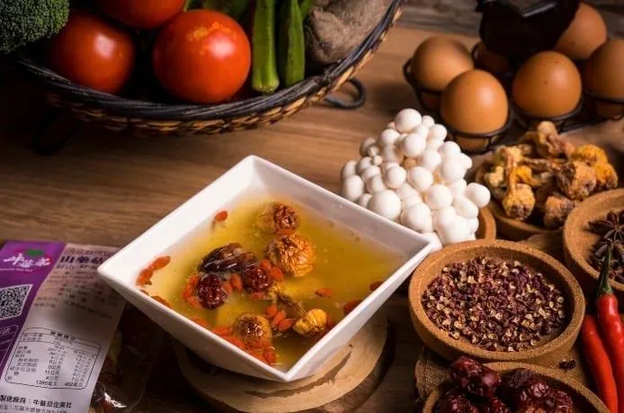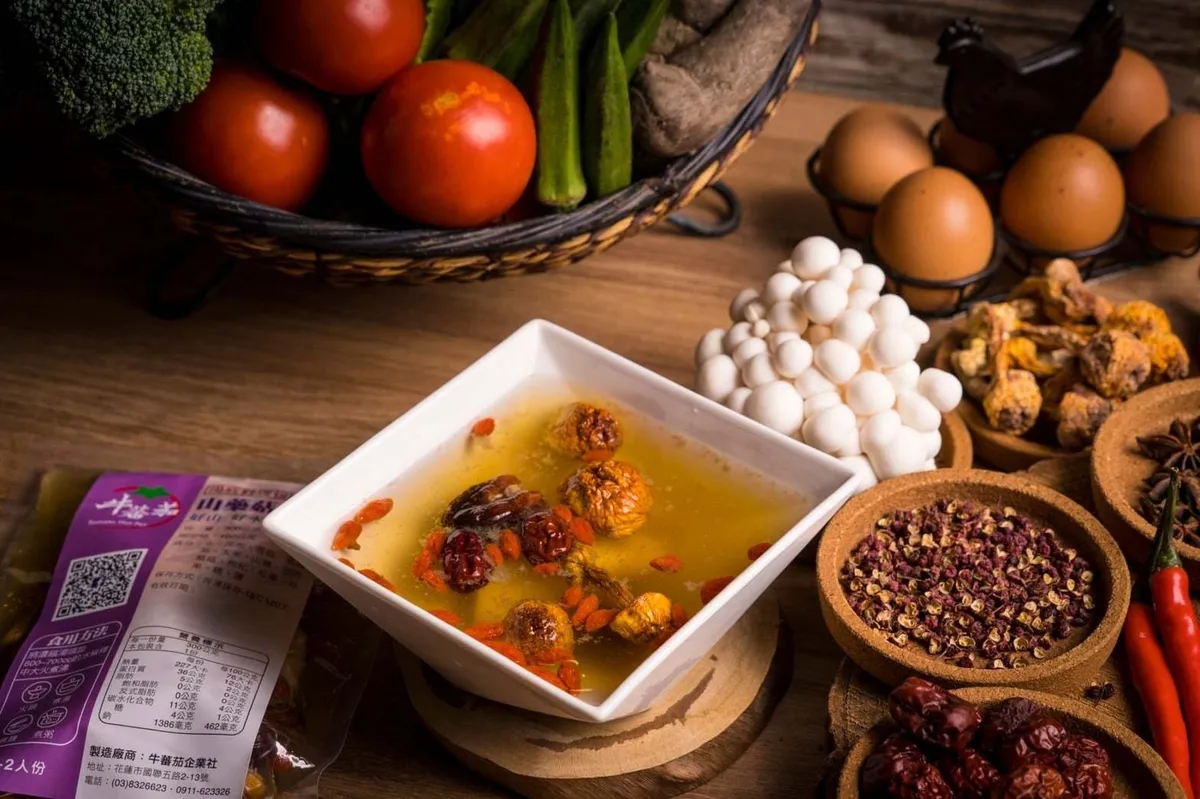 亦添加多種中藥草果及新鮮蔬果等各種食材,耗時精心熬煮。