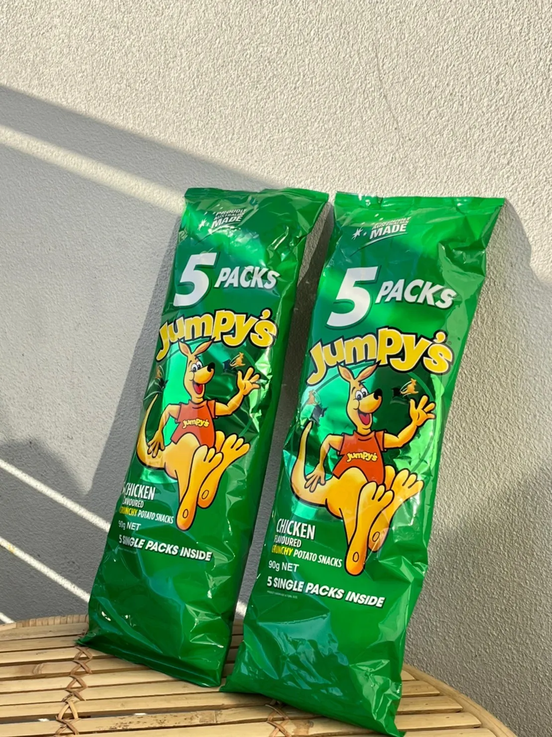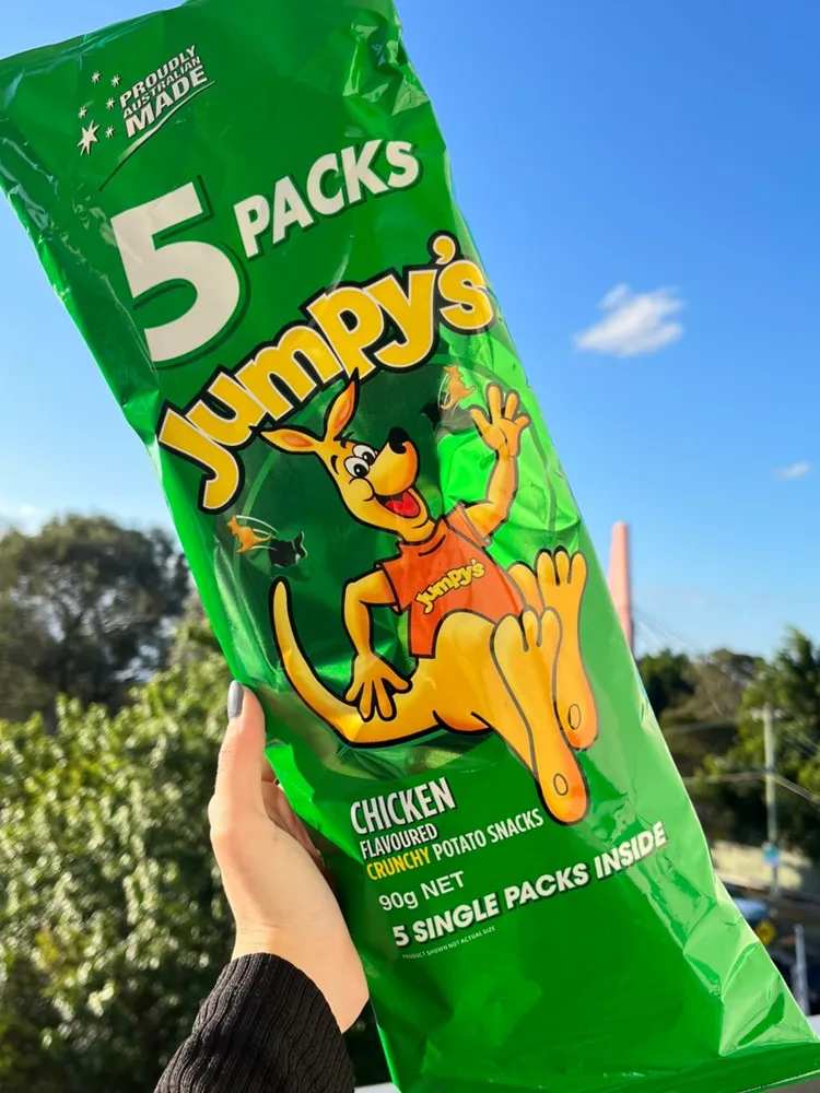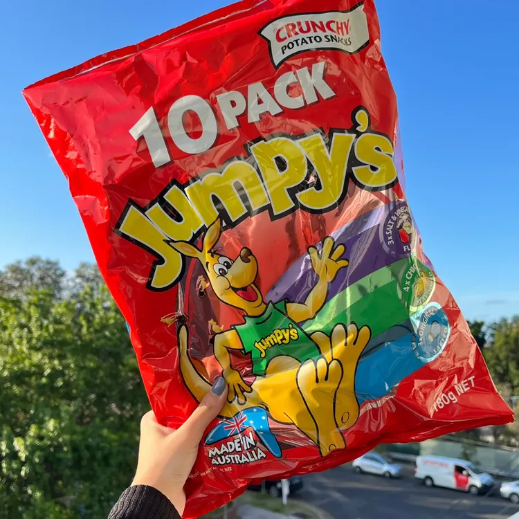 澳洲除了咖啡、袋鼠和美麗的海景之外,還有一樣絕對不能錯過袋鼠餅乾。 雞汁口味吃起來像是更香的好多魚, 清爽的馬鈴薯香配上濃郁雞汁粉,越吃越順口, 下午時間常常是一包接著一包,回過神整袋都吃完。 它最貼心的地方是採用小包獨立包裝, 不管是要分給同事、朋友,還是帶給小朋友當點心都很方便, 也不用擔心開了一大包吃不完。 綠色包裝的是雞汁口味,共五小包; 紅色包裝則是綜合口味,有十小包, 裡面分別是雞汁、鹽醋和原味三種。