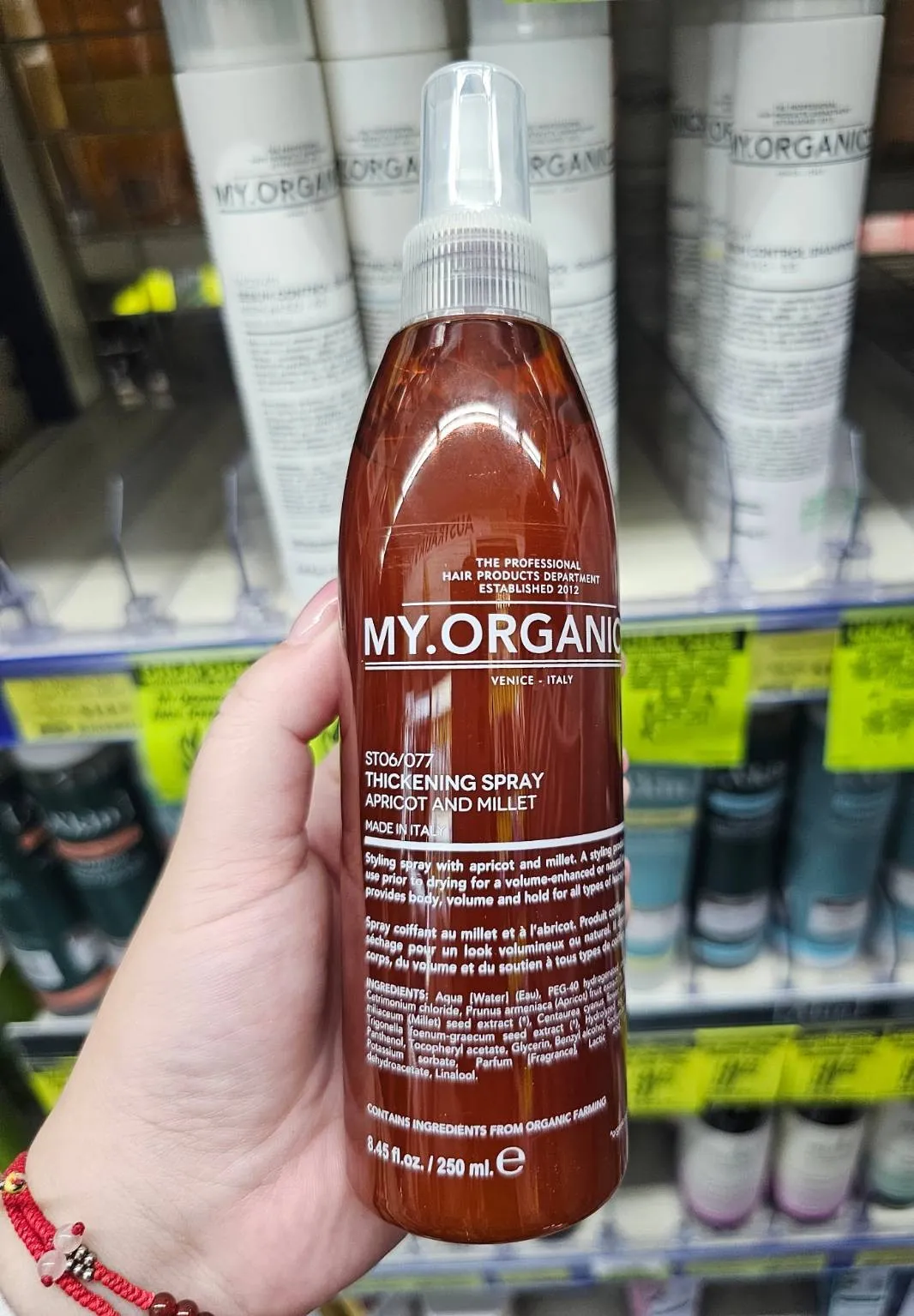 不知道有沒有人跟我一樣是細軟髮! 尤其是細軟髮、油頭女孩,天氣一悶、汗一出, 整個頭頂瞬間變成油亮貼頭的悲劇現場~ 我真的試過無數瓶噴霧,要馬定型太死、要馬根本沒用! 直到我用到這瓶義大利沙龍級的, My Organics 護髮澎鬆微定型噴霧水 250ml, 第一次噴完吹乾,我直接被驚艷到。那種自然撐起來的髮根感,像剛離開專業髮廊一樣蓬鬆又柔順, 整個人看起來氣場直接上升一階。